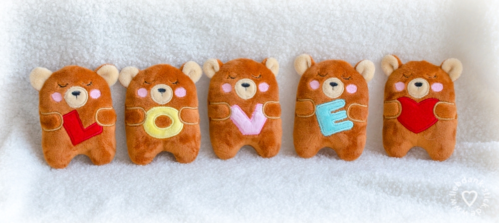 Es besteht aus 5 niedlichen ITH-Bären – vier davon halten jeweils einen Buchstaben und zusammen ergeben sie das Wort LOVE, der fünfte Bär umarmt ein süßes Herz.
